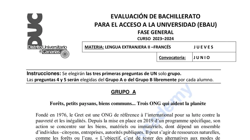 Reservar clase gratis →Examen de Francés selectividad Canarias (Ordinaria 2024)