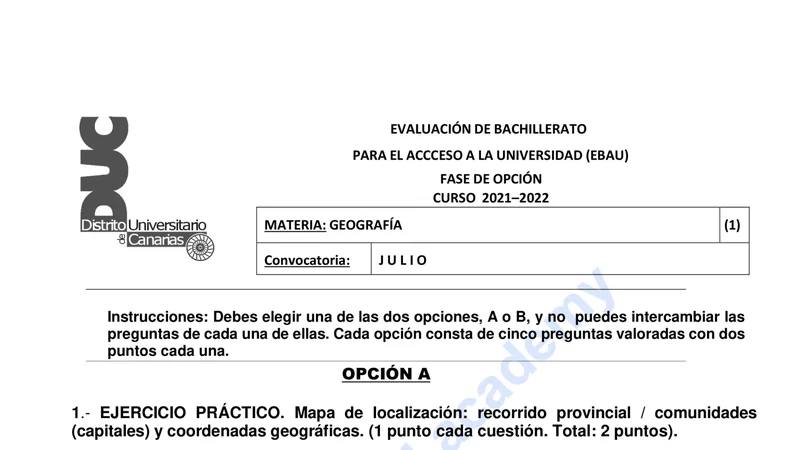 Reservar clase gratis →Examen de Geografía selectividad Canarias (Extraordinaria 2022)