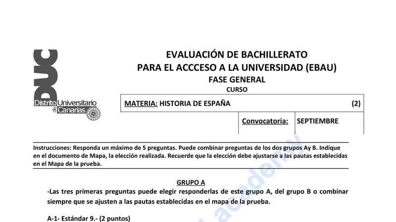 Examen de Historia de España selectividad Canarias — Extraordinaria 2020