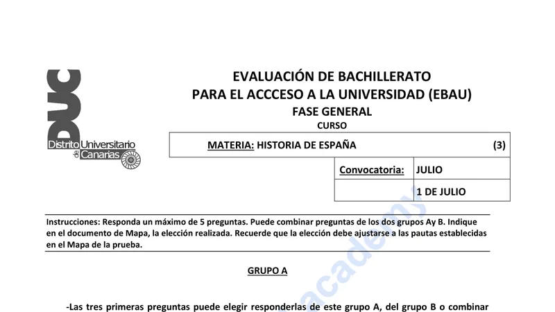 Examen de Historia de España selectividad Canarias — Ordinaria 2020