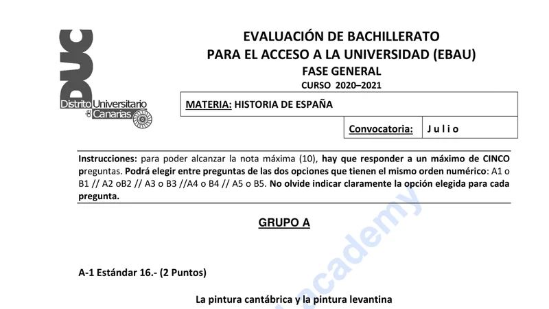 Reservar clase gratis →Examen de Historia de España selectividad Canarias (Extraordinaria 2021)