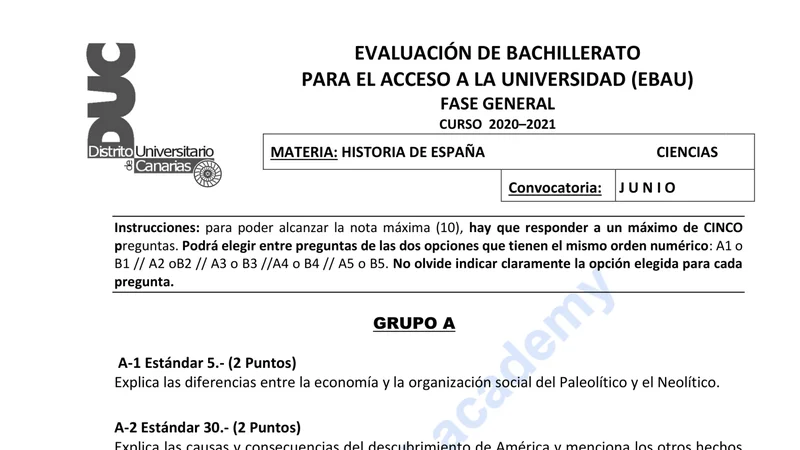Examen de Historia de España selectividad Canarias — Ordinaria 2021