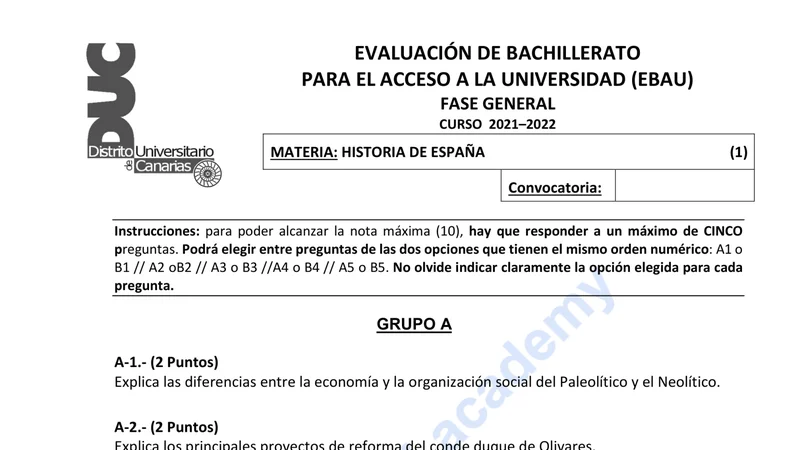 Reservar clase gratis →Examen de Historia de España selectividad Canarias (Extraordinaria 2022)