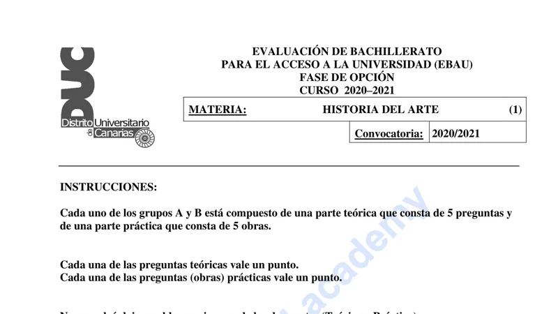 Examen de Historia del Arte selectividad Canarias — Ordinaria 2021