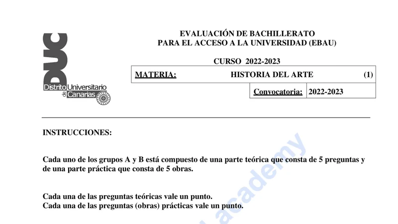 Examen de Historia del Arte selectividad Canarias — Extraordinaria 2023