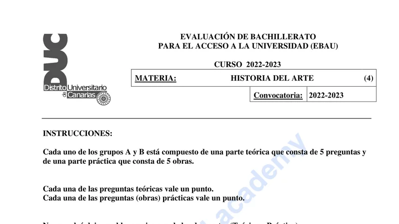 Examen de Historia del Arte selectividad Canarias — Ordinaria 2023