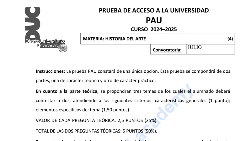 Examen de Historia del Arte selectividad Canarias — Extraordinaria 2025