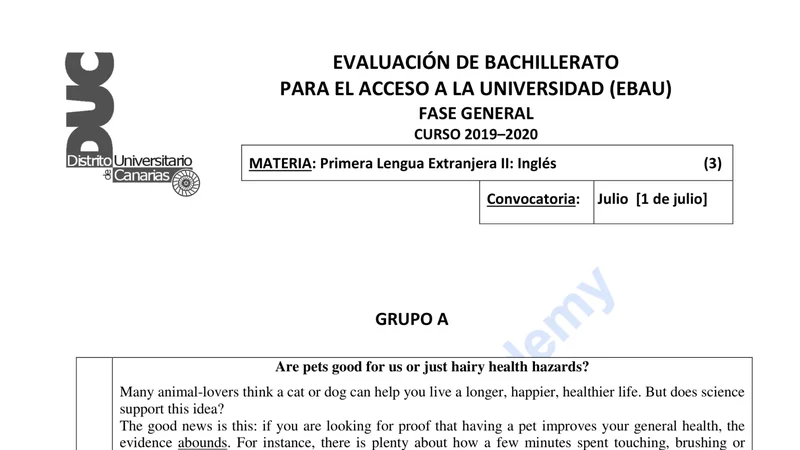 Reservar clase gratis →Examen de Inglés selectividad Canarias (Ordinaria 2020)