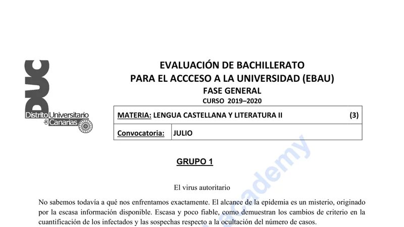 Reservar clase gratis →Examen de Lengua Castellana y Literatura selectividad Canarias (Ordinaria 2020)