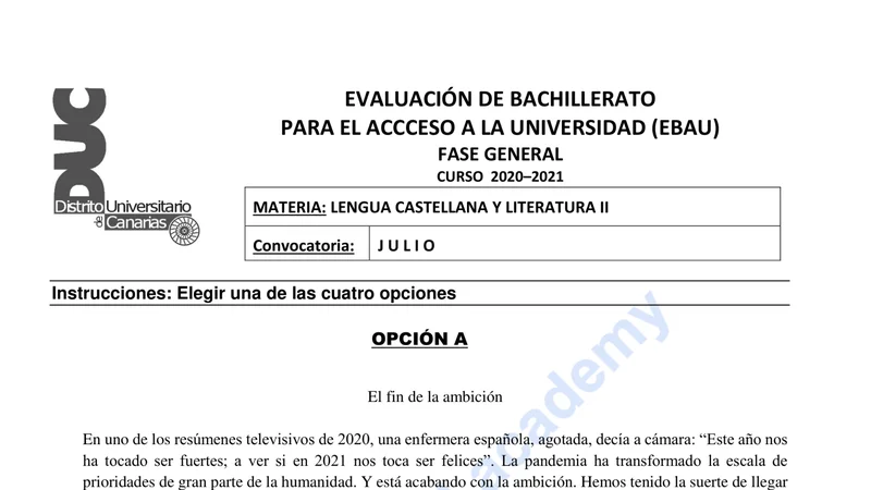 Reservar clase gratis →Examen de Lengua Castellana y Literatura selectividad Canarias (Extraordinaria 2021)