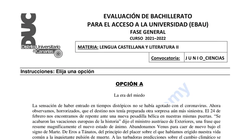 Reservar clase gratis →Examen de Lengua Castellana y Literatura selectividad Canarias (Ordinaria 2022)