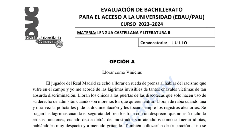 Reservar clase gratis →Examen de Lengua Castellana y Literatura selectividad Canarias (Extraordinaria 2024)