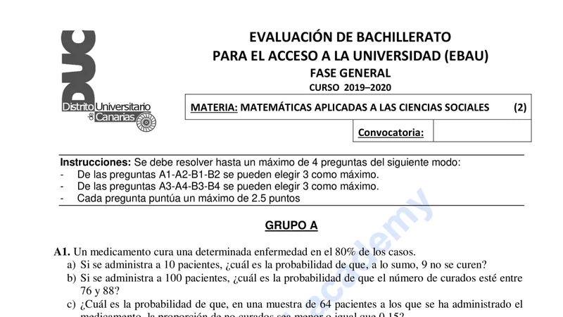 Reservar clase gratis →Examen de Matemáticas Aplicadas CCSS selectividad Canarias (Extraordinaria 2020)