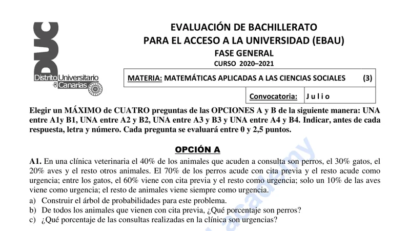 Reservar clase gratis →Examen de Matemáticas Aplicadas CCSS selectividad Canarias (Extraordinaria 2021)