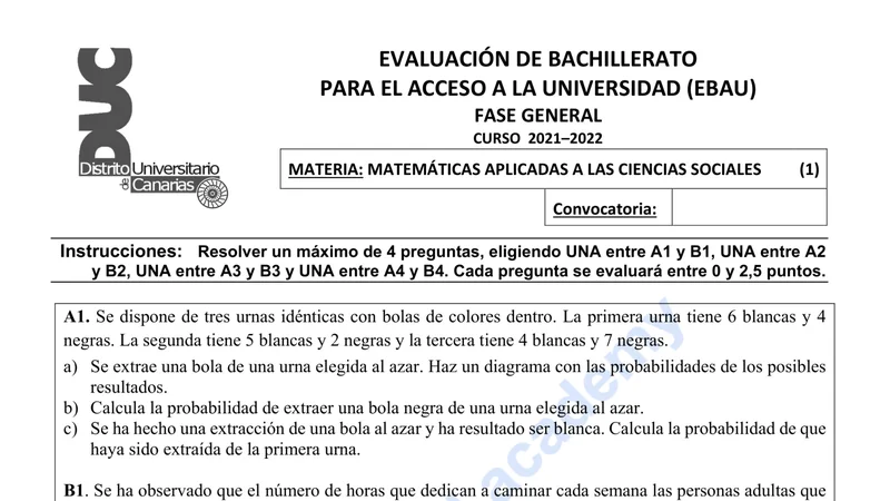Reservar clase gratis →Examen de Matemáticas Aplicadas CCSS selectividad Canarias (Extraordinaria 2022)