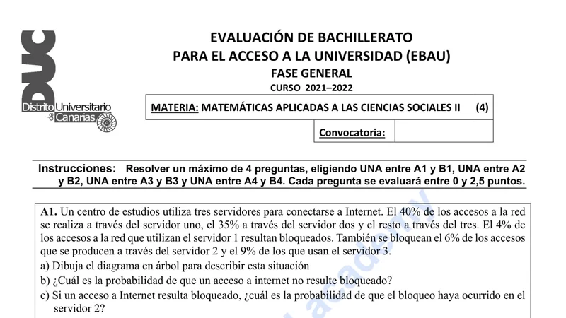 Reservar clase gratis →Examen de Matemáticas Aplicadas CCSS selectividad Canarias (Ordinaria 2022)