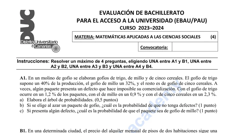 Reservar clase gratis →Examen de Matemáticas Aplicadas CCSS selectividad Canarias (Extraordinaria 2024)