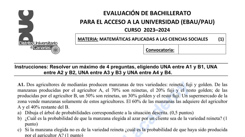 Examen de Matemáticas CCSS selectividad Canarias — Ordinaria 2024