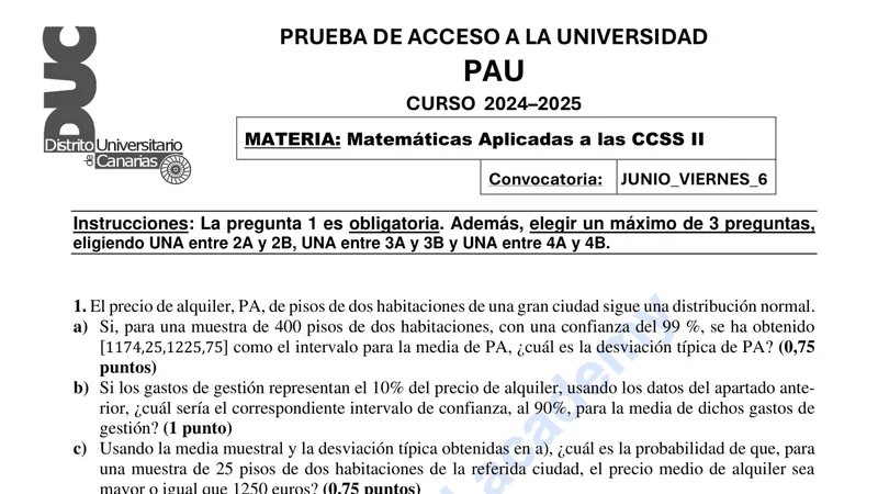 Reservar clase gratis →Examen de Matemáticas Aplicadas CCSS selectividad Canarias (Ordinaria 2025)