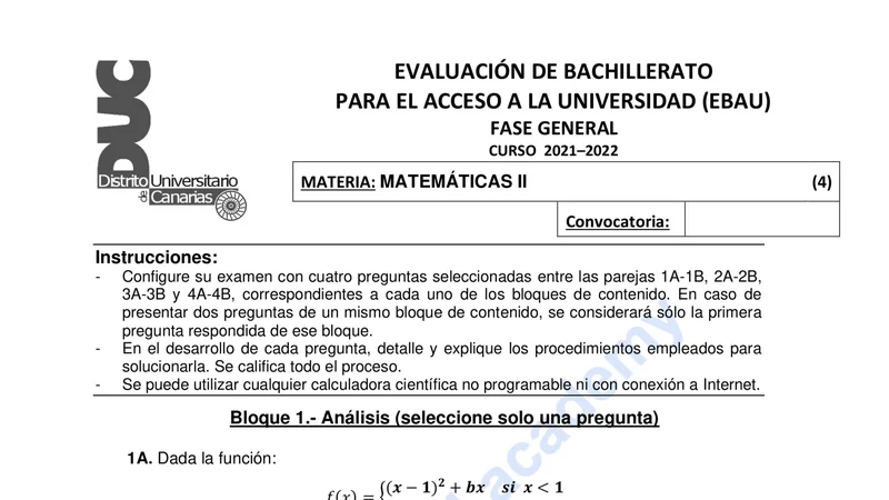 Reservar clase gratis →Examen de Matemáticas II selectividad Canarias (Ordinaria 2022)