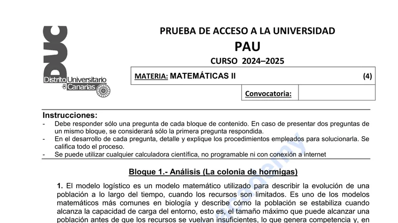 Enunciado oficial del examen de Matemáticas II de la convocatoria extraordinaria de 2025 de la EBAU/PAU de Canarias. PDF de 0.2 MB. Descarga gratuita y sin registro. ¿Preparando la selectividad? Calcula tu nota estimada o consulta la guía completa de selectividad 2026. Encuentra todos los exámenes de Matemáticas II en Canarias o explora las 17 comunidades autónomas.
