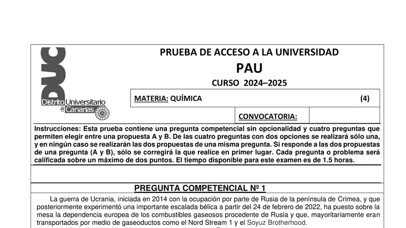 Examen de Química selectividad Canarias — Extraordinaria 2025