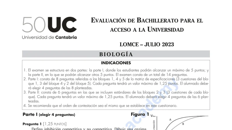 Examen de Biología selectividad Cantabria — Extraordinaria 2023