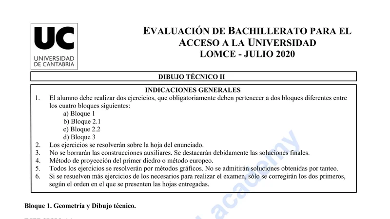 Examen de Dibujo Técnico II selectividad Cantabria — Ordinaria 2020