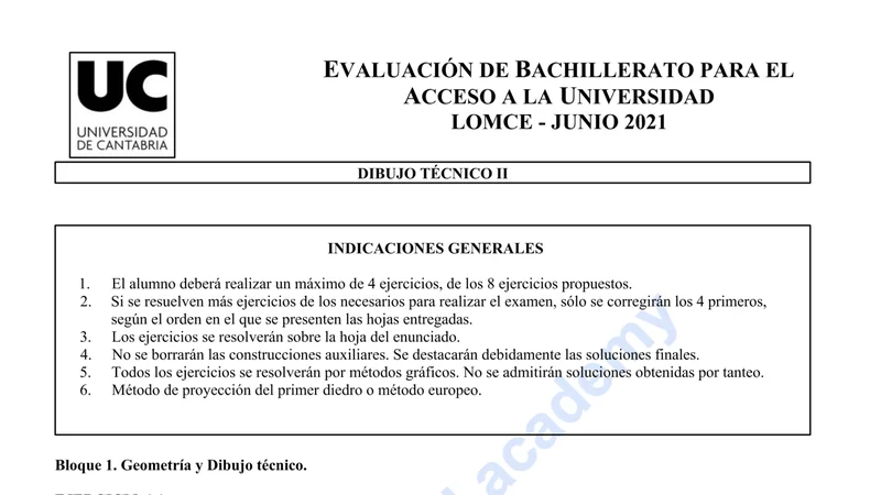 Reservar clase gratis →Examen de Dibujo Técnico II selectividad Cantabria (Ordinaria 2021)