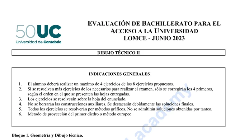 Reservar clase gratis →Examen de Dibujo Técnico II selectividad Cantabria (Ordinaria 2023)