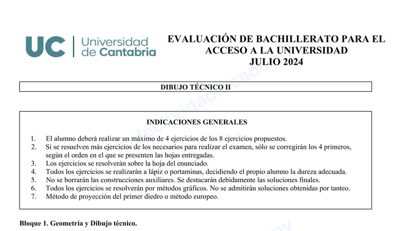 Examen de Dibujo Técnico II selectividad Cantabria — Extraordinaria 2024
