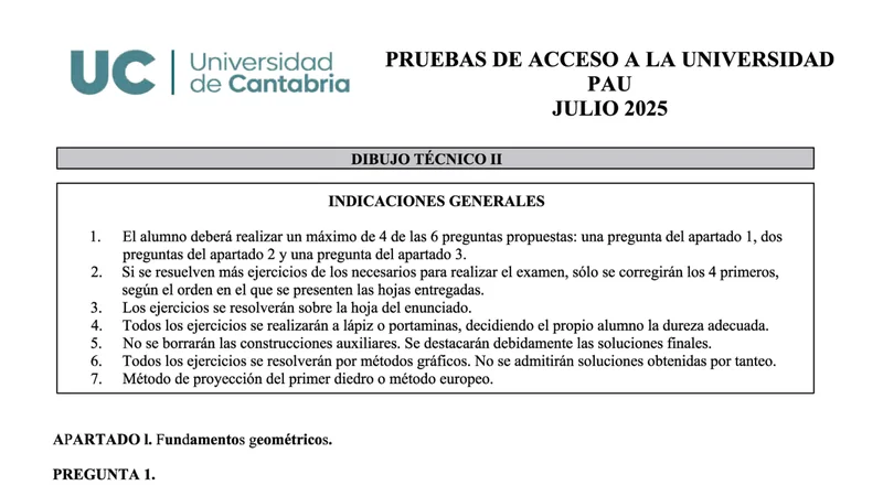 Reservar clase gratis →Examen de Dibujo Técnico II selectividad Cantabria (Extraordinaria 2025)