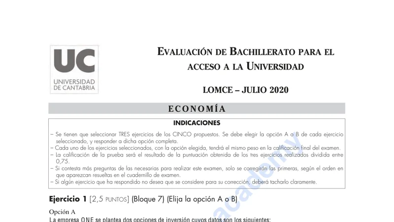 Reservar clase gratis →Examen de Economía de la Empresa selectividad Cantabria (Ordinaria 2020)