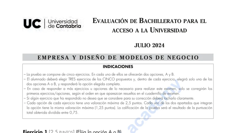 Reservar clase gratis →Examen de Economía selectividad Cantabria (Extraordinaria 2024)