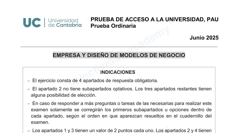 Reservar clase gratis →Examen de Economía de la Empresa selectividad Cantabria (Ordinaria 2025)