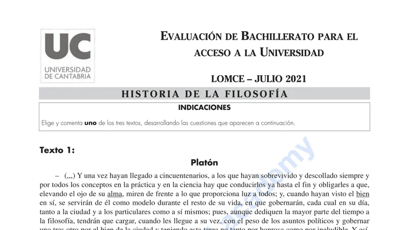 Examen de Historia de la Filosofía selectividad Cantabria (Extraordinaria 2021)