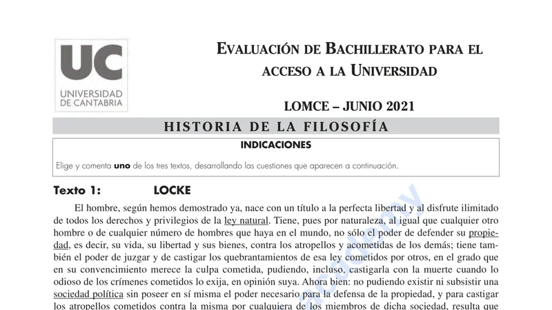 Examen de Historia de la Filosofía selectividad Cantabria — Ordinaria 2021
