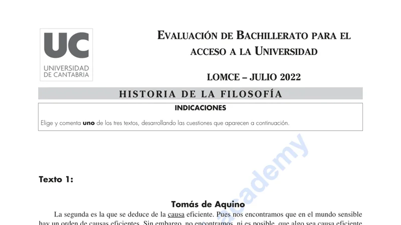 Examen de Historia de la Filosofía selectividad Cantabria — Extraordinaria 2022