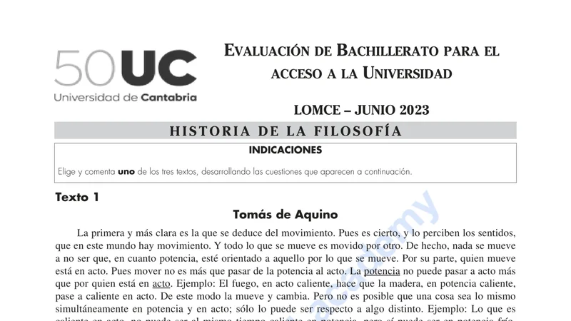 Examen de Historia de la Filosofía selectividad Cantabria — Ordinaria 2023