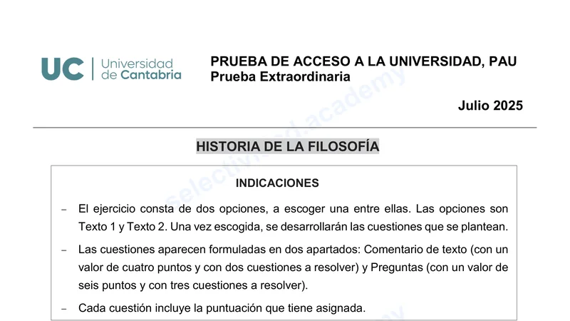 Examen de Historia de la Filosofía selectividad Cantabria — Extraordinaria 2025