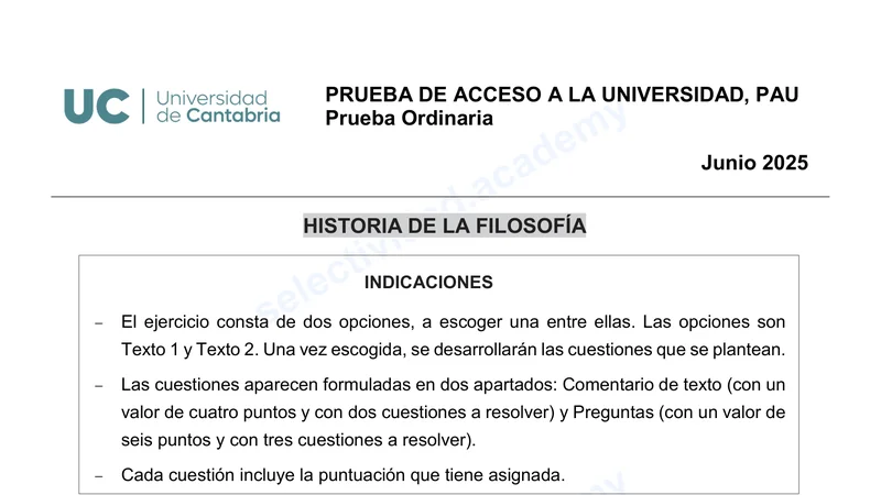 Examen de Historia de la Filosofía selectividad Cantabria — Ordinaria 2025