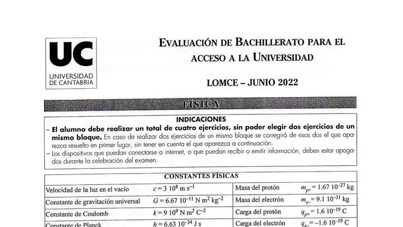 Examen de Física selectividad Cantabria — Ordinaria 2022