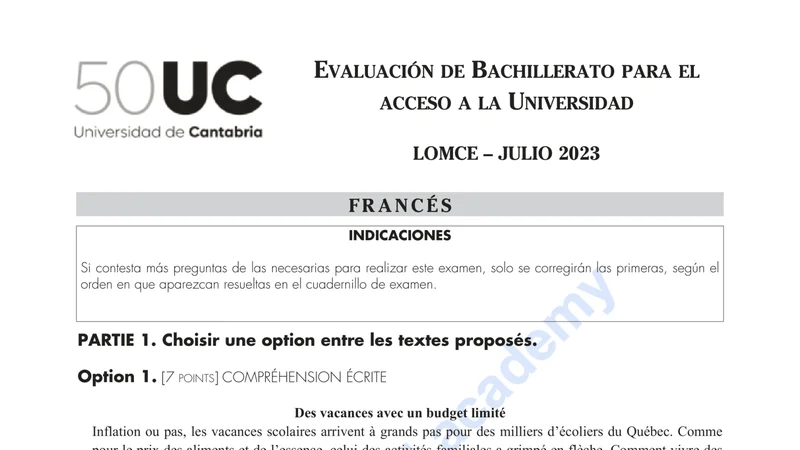 Reservar clase gratis →Examen de Francés selectividad Cantabria (Extraordinaria 2023)