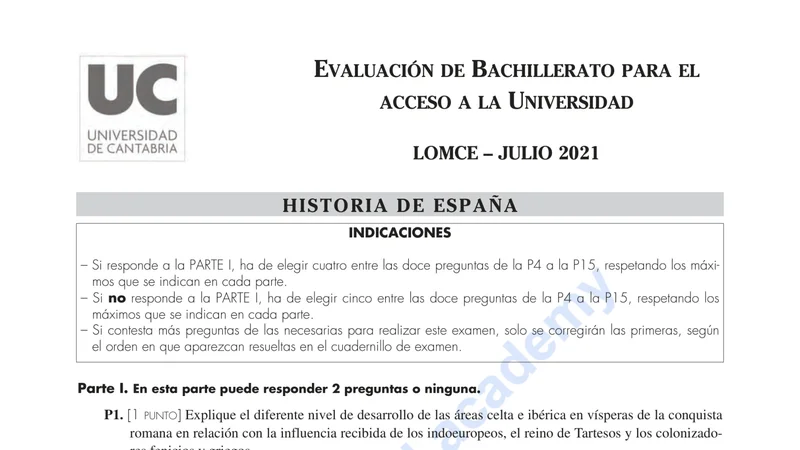 Reservar clase gratis →Examen de Historia de España selectividad Cantabria (Extraordinaria 2021)