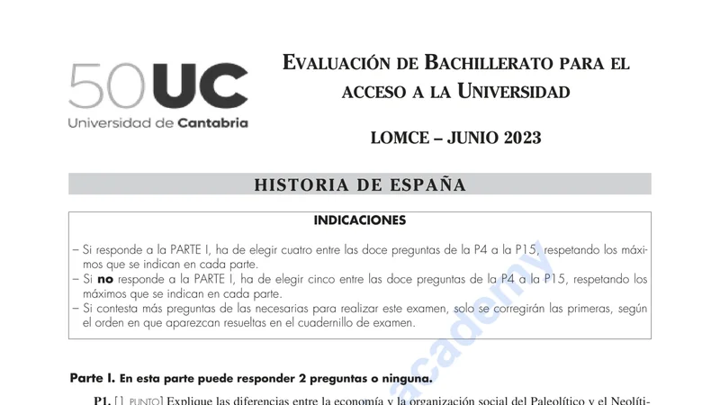Reservar clase gratis →Examen de Historia de España selectividad Cantabria (Ordinaria 2023)