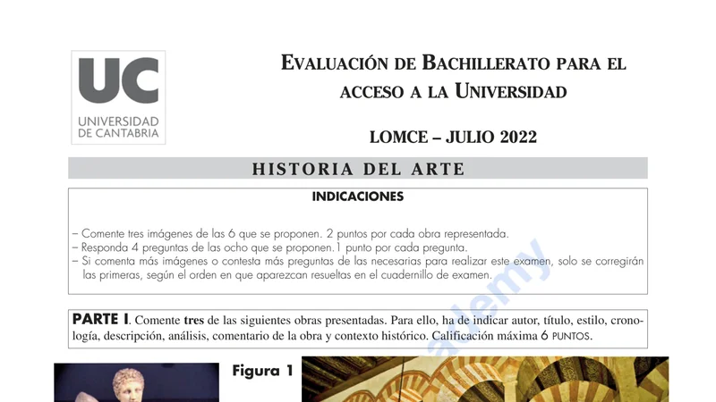 Reservar clase gratis →Examen de Historia del Arte selectividad Cantabria (Extraordinaria 2022)