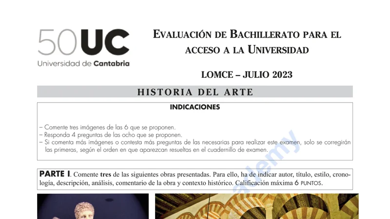 Examen de Historia del Arte selectividad Cantabria — Extraordinaria 2023