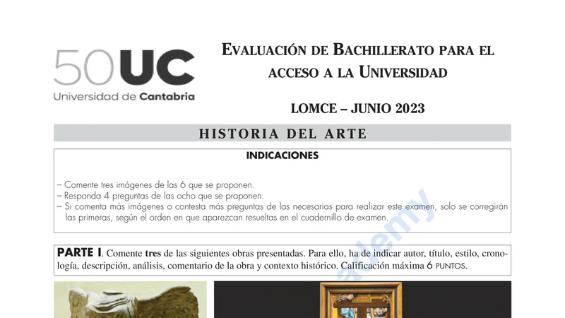Examen de Historia del Arte selectividad Cantabria — Ordinaria 2023