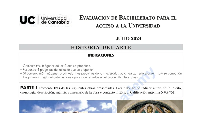 Reservar clase gratis →Examen de Historia del Arte selectividad Cantabria (Extraordinaria 2024)