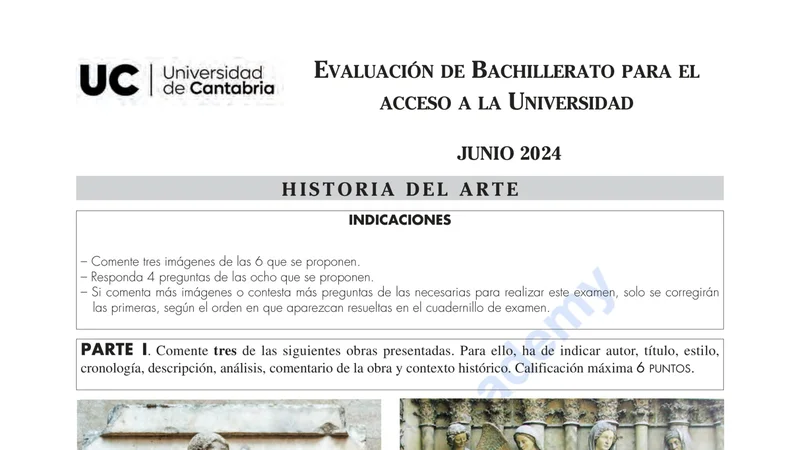 Examen de Historia del Arte selectividad Cantabria — Ordinaria 2024